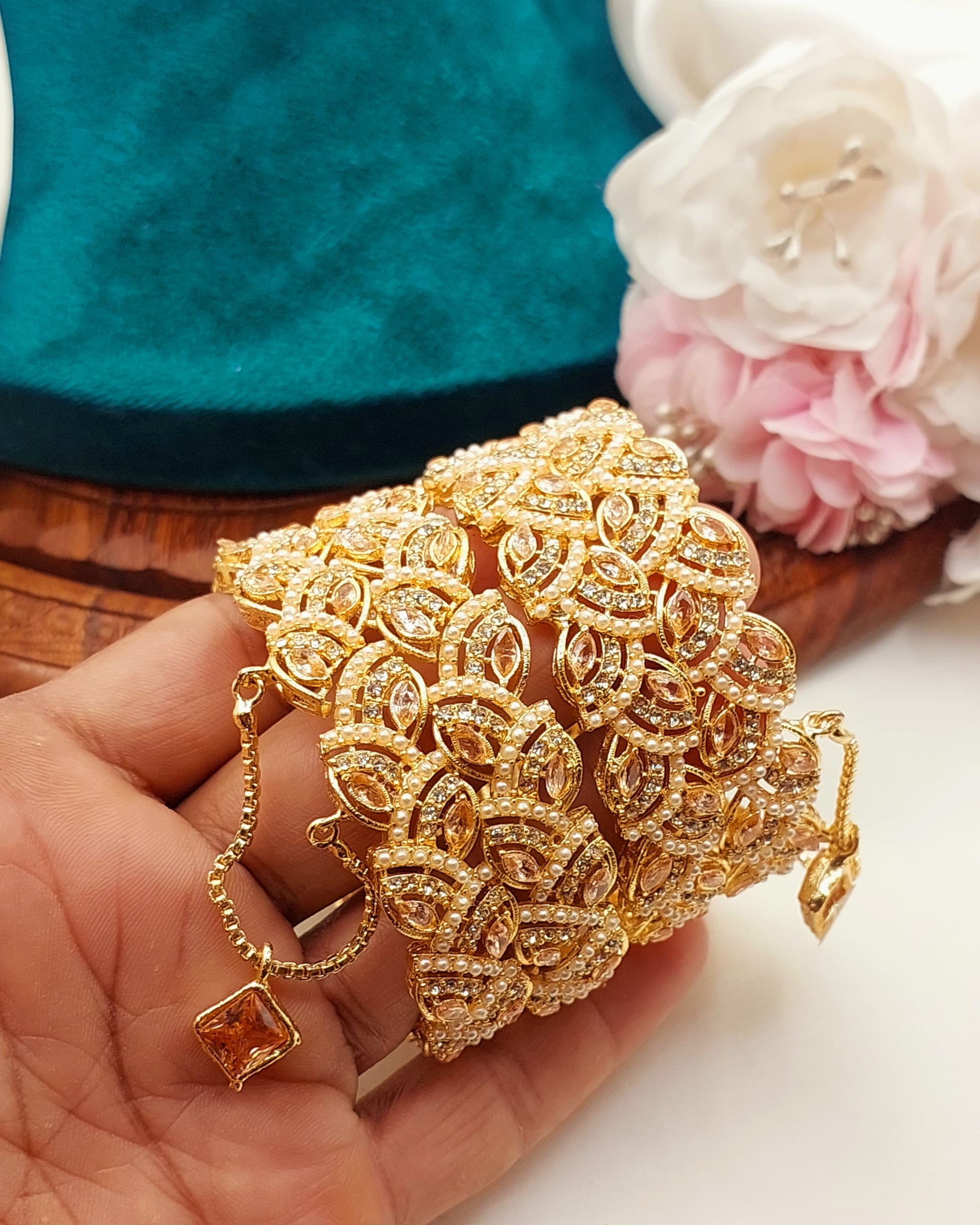 • Designs: Ranges from simple and elegant to heavily embellished bridal-style bangles.