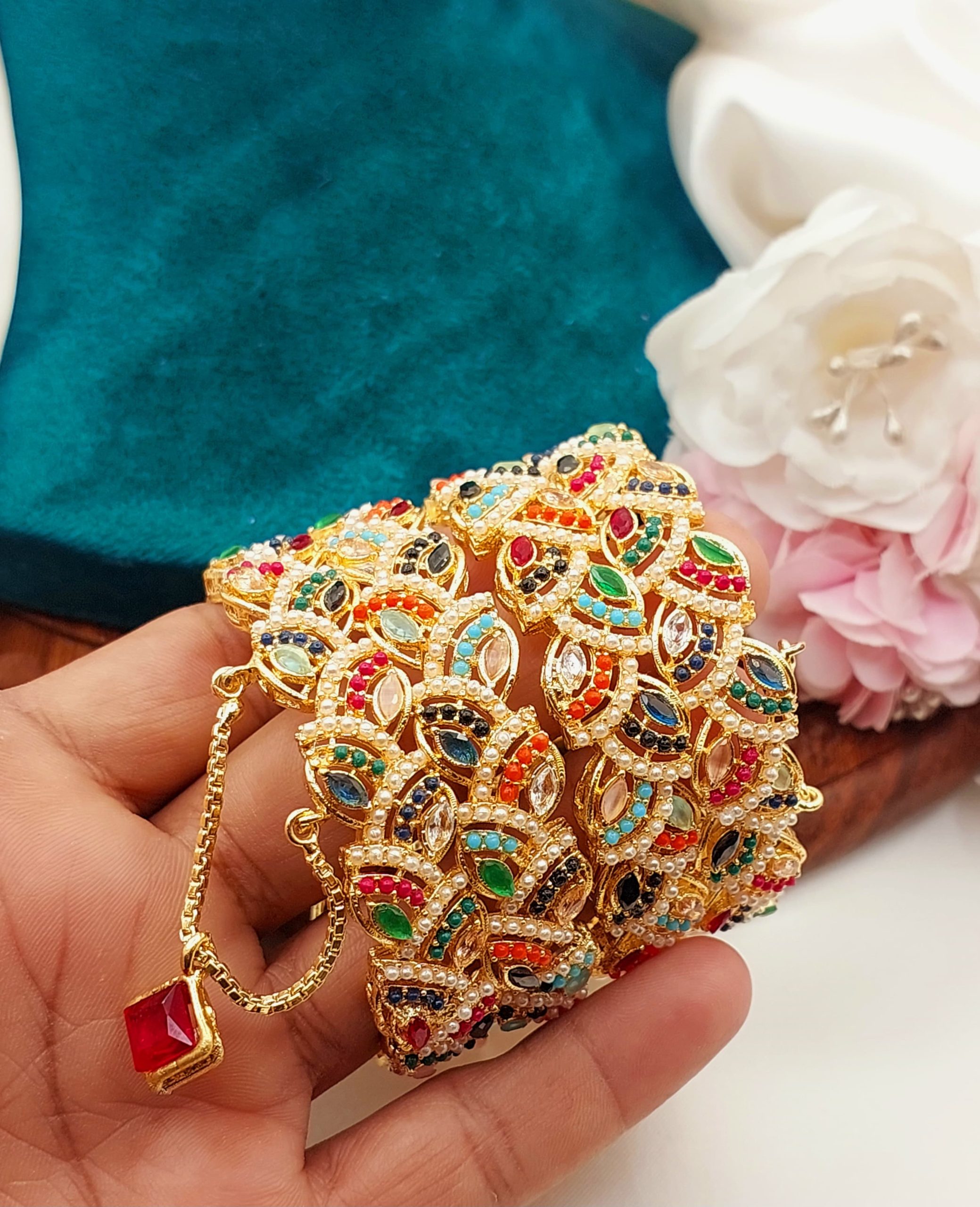 • Stone Work: Embellished with American Diamonds (AD), Kundan, Polki, pearls, or colored stones to add sparkle and elegance.