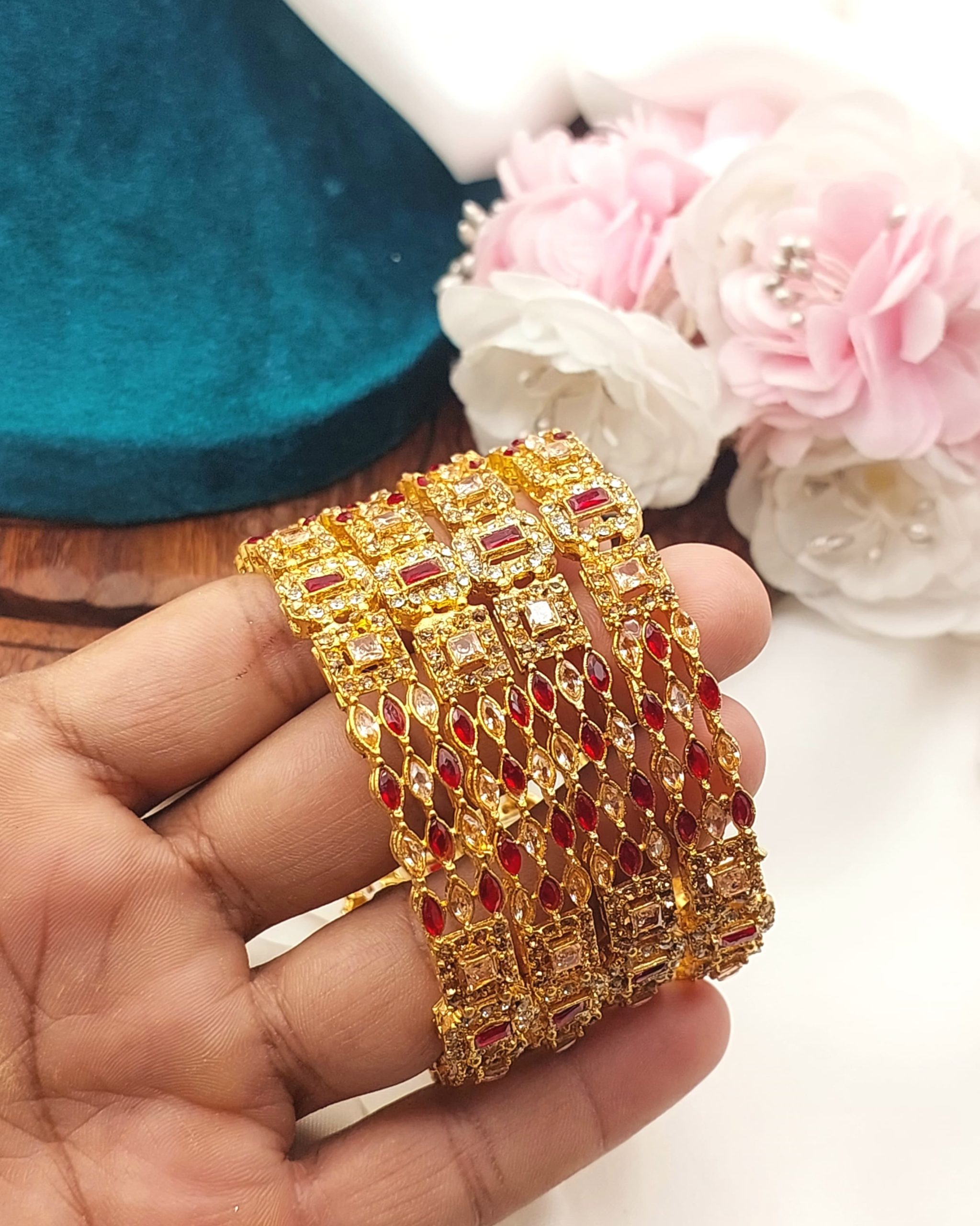 • Designs: Ranges from simple and elegant to heavily embellished bridal-style bangles.