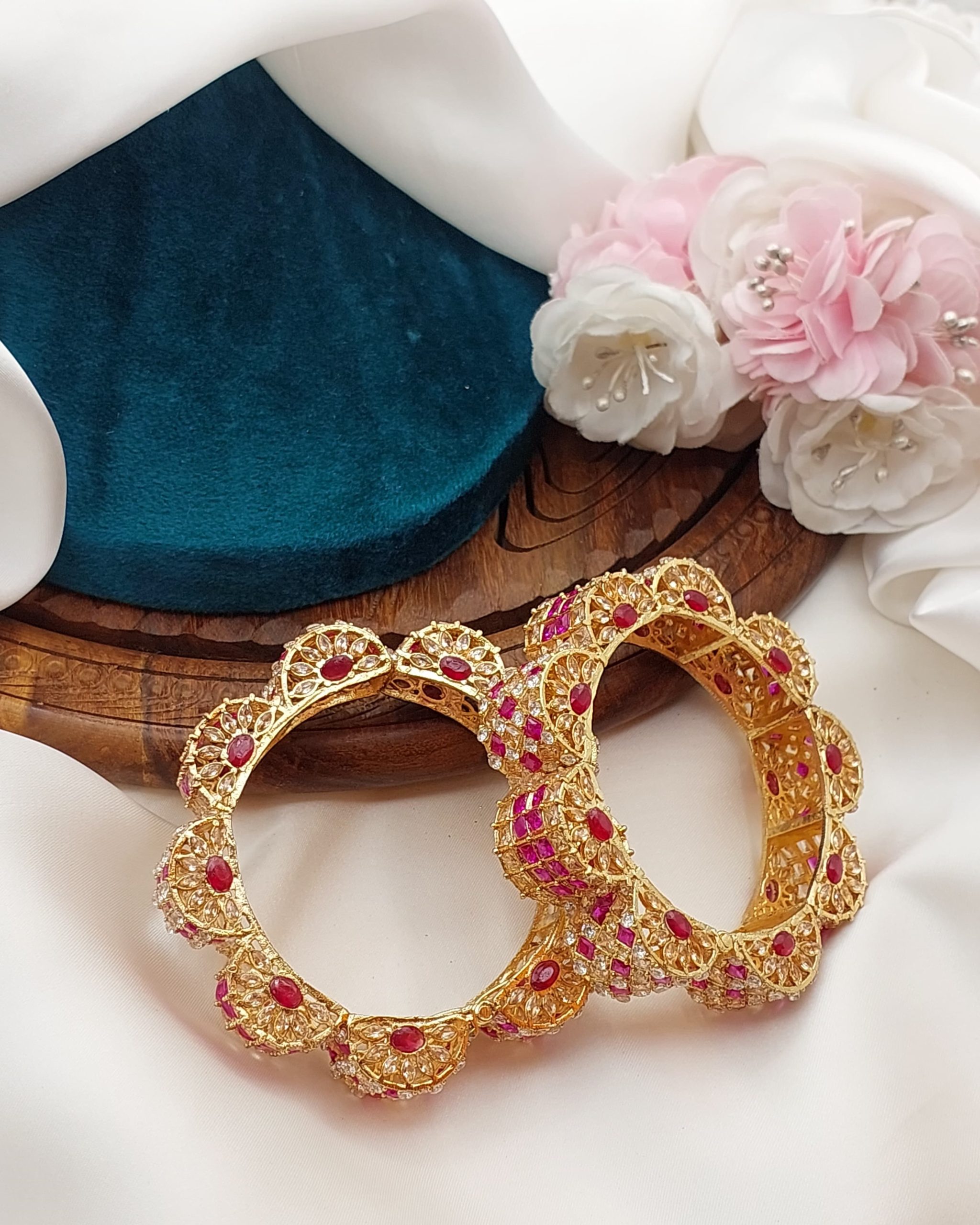 • Designs: Ranges from simple and elegant to heavily embellished bridal-style bangles.